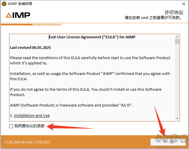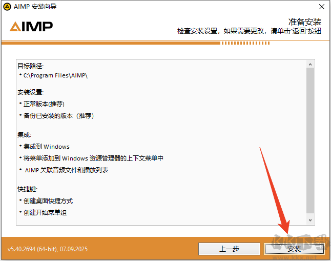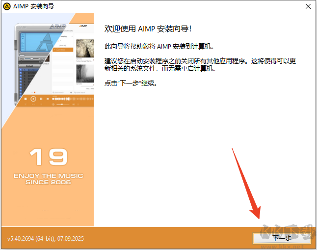 1、解壓后運(yùn)行“aimp_5.40.2694_w64.exe”,選擇中文語(yǔ)言,點(diǎn)擊OK;
