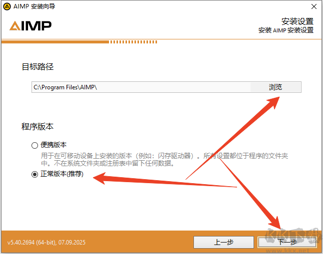 4、可點(diǎn)擊“瀏覽”更改安裝路徑,若需安裝到移動(dòng)設(shè)備請(qǐng)選擇便攜版,然后點(diǎn)擊下一步;
