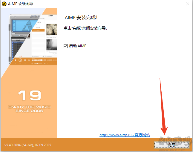 8、勾選“啟動(dòng)AIMP”,點(diǎn)擊完成即可運(yùn)行程序。