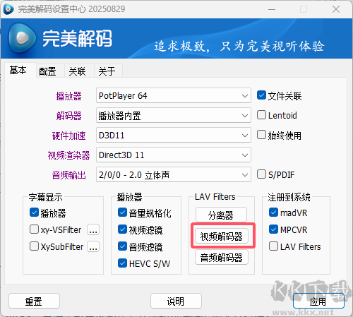1、進入完美解碼設(shè)置中心,選擇視頻解碼器項。