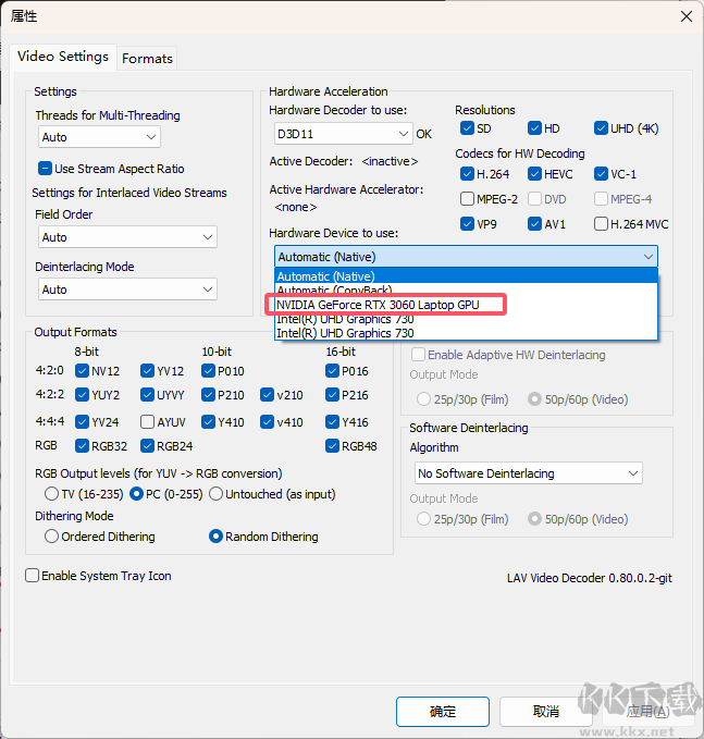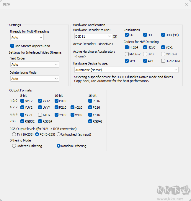2、于視頻解碼器設(shè)置中開啟“使用硬件加速(DXVA)”及“優(yōu)先使用D3D11 DXVA”選項。