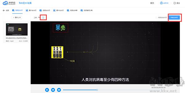 3、使用左上角框選工具選中水印區(qū)域,點(diǎn)擊右上角“開始去水印”