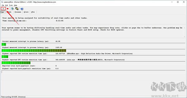3、為防止此類問(wèn)題發(fā)生,建議提前排查根源并做好應(yīng)對(duì)準(zhǔn)備,LatencyMon能以極簡(jiǎn)操作完成檢測(cè)并呈現(xiàn)清晰結(jié)果。