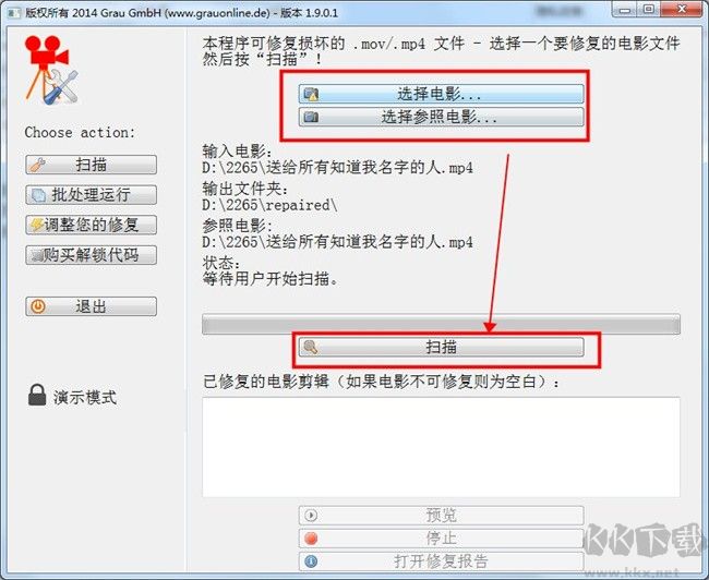 4、選取參考影片,點擊“掃描”;