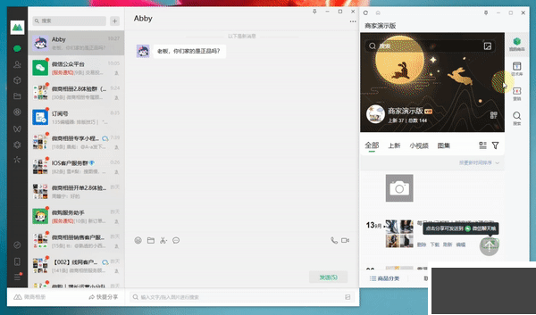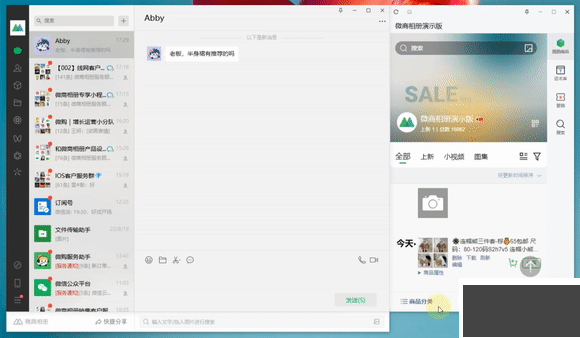 將軟件側(cè)邊欄拖至微信窗口右側(cè),可自動(dòng)貼合界面,方便在聊天同時(shí)進(jìn)行搜索、分享等操作。此外還兼容企業(yè)微信、QQ等常用聊天工具。