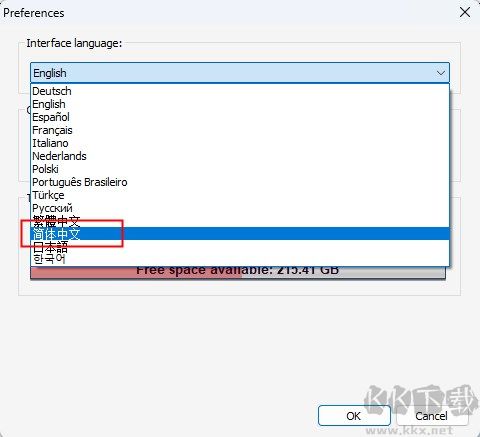 2、語(yǔ)言選擇簡(jiǎn)體中文,點(diǎn)擊OK