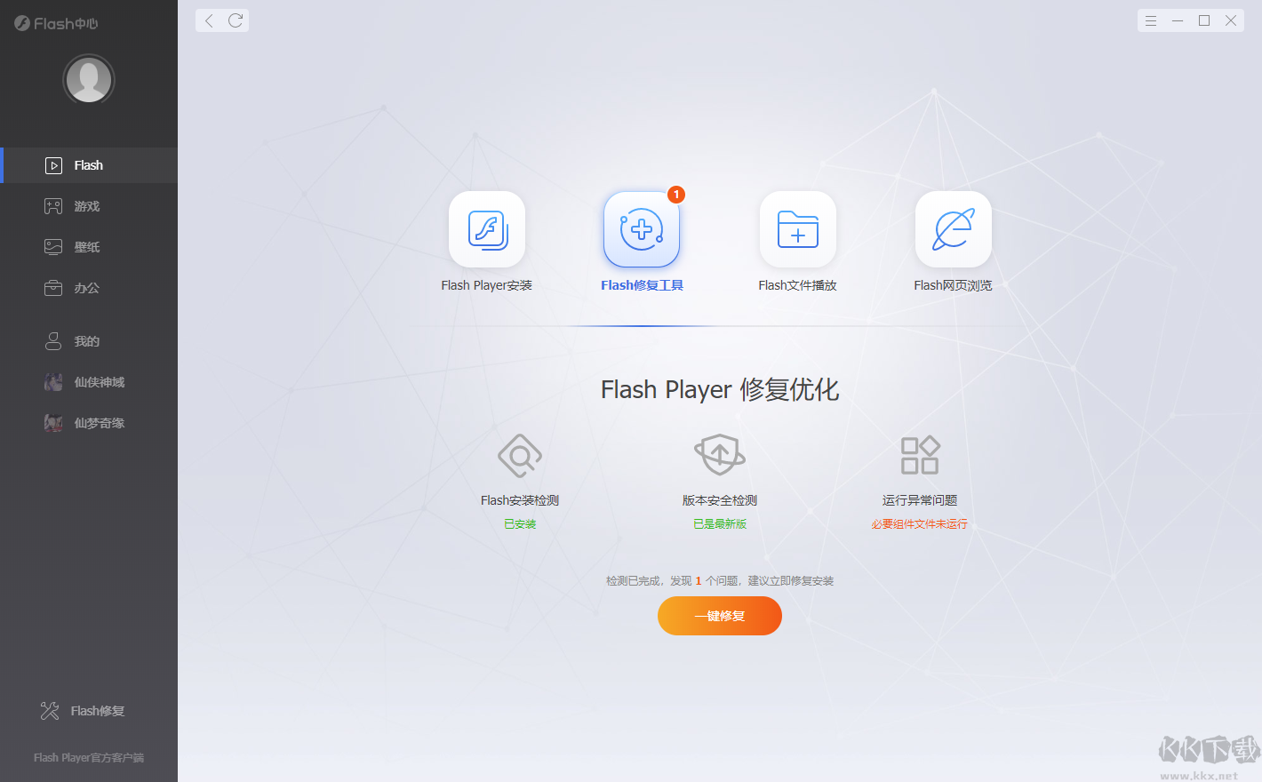 5、系統(tǒng)將自動(dòng)檢測(cè)軟件狀態(tài),如發(fā)現(xiàn)問(wèn)題,點(diǎn)擊“一鍵修復(fù)”即可處理。