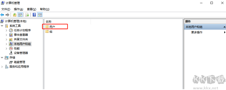 2、選擇“本地用戶和組”;