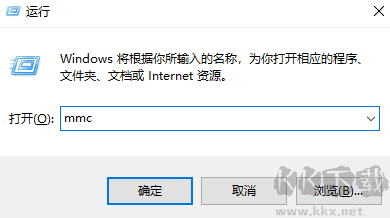 1、同時(shí)按下“Win + R”打開(kāi)運(yùn)行窗口,輸入“mmc”,點(diǎn)擊確認(rèn);