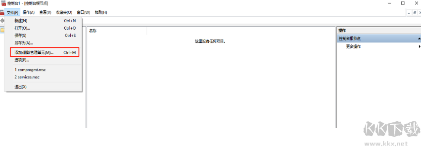3、點(diǎn)擊菜單欄“文件”選項(xiàng),選擇“添加/刪除管理單元”;