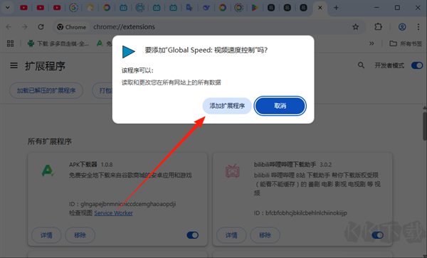 5、在彈出的提示框中點擊“添加擴展”即可。