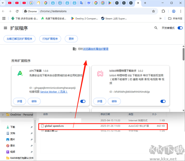 3、將壓縮包直接拖入擴展程序頁面(需保持開發(fā)者模式開啟);