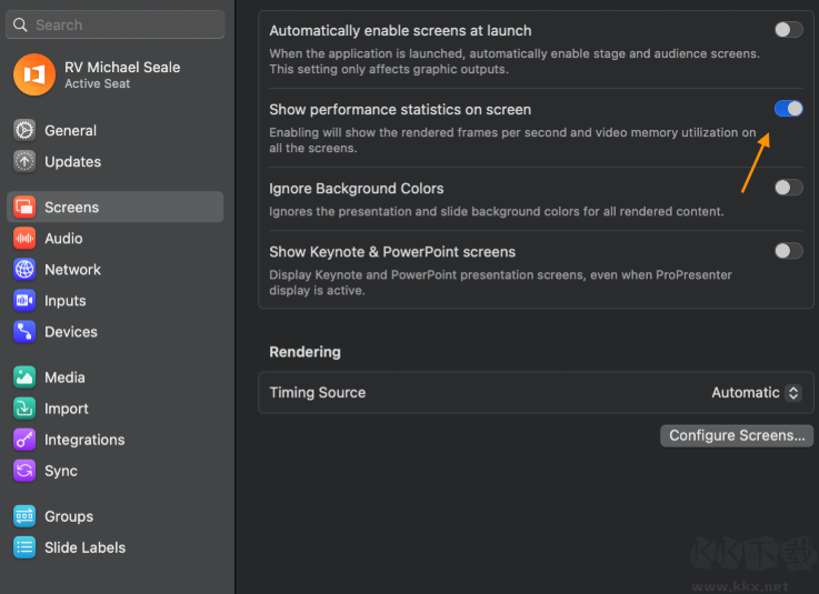 完成屏幕配置后,可通過(guò)“外觀”自定義各屏幕所顯示的內(nèi)容。若遇到性能問(wèn)題,可進(jìn)入“設(shè)置”→“屏幕”選項(xiàng)卡,勾選“在屏幕上顯示性能統(tǒng)計(jì)信息”,畫(huà)面將實(shí)時(shí)呈現(xiàn)幀率等運(yùn)行數(shù)據(jù)。注意正式演示前應(yīng)關(guān)閉該功能,避免文字信息對(duì)外展示。