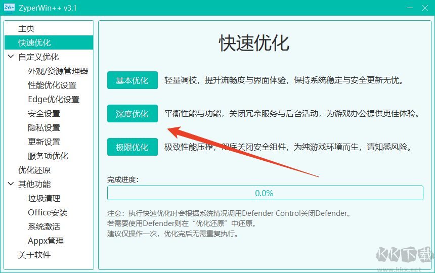提供基礎、深度和極限三種優(yōu)化檔位,分別適配辦公、游戲等多種使用情境。
