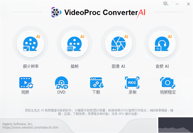 VideoProc Converter AI是一款性能全面的視頻處理軟件,基于先進(jìn)的智能AI技術(shù),它提供高度自動(dòng)化的視頻編輯體驗(yàn),無(wú)論專業(yè)創(chuàng)作者還是普通用戶,都能快速上手,軟件能夠提升視頻的質(zhì)量與清晰度,通過簡(jiǎn)單的操作就可以完成對(duì)影像、圖片等素材進(jìn)行AI畫質(zhì)強(qiáng)化。VideoProc Converter AI支持多種格式的視頻導(dǎo)入,還有剪輯、添加字幕、合并片段等功能,支持多任務(wù)并行處理,覆蓋絕大多數(shù)視頻處理場(chǎng)景。
