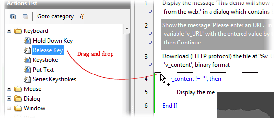 1.在宏腳本編輯器,你只要拖動從左窗格下降動作要正確。