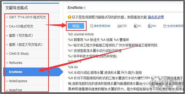 5、除了上面提到的格式,還有其他的引文格式。在這里我們能夠?qū)С?Endnot 格式,這種格式能批量管理并添加參考文獻(xiàn),非常便捷,如圖所示。