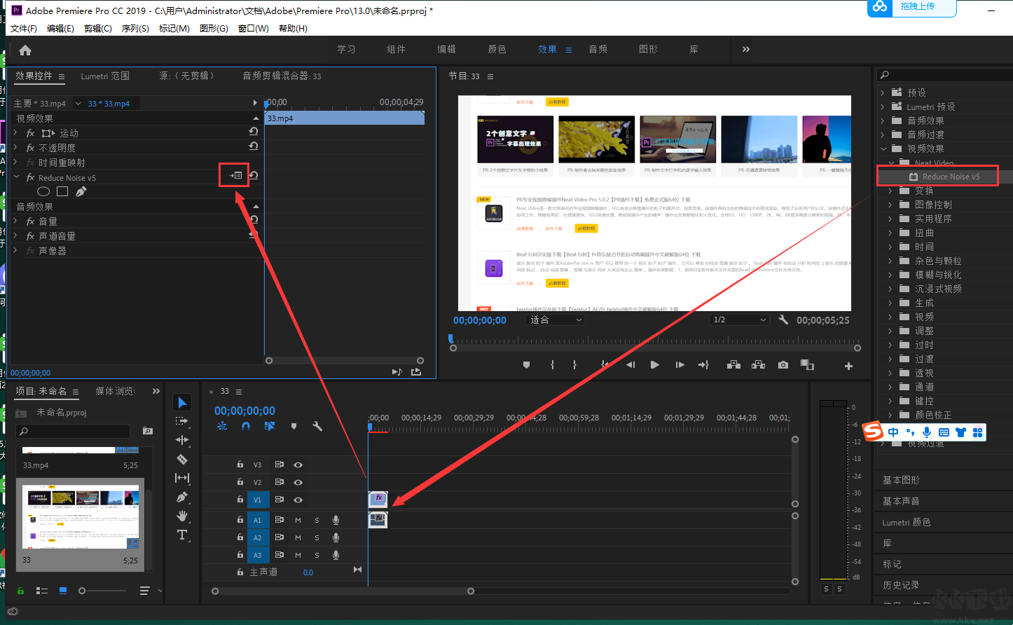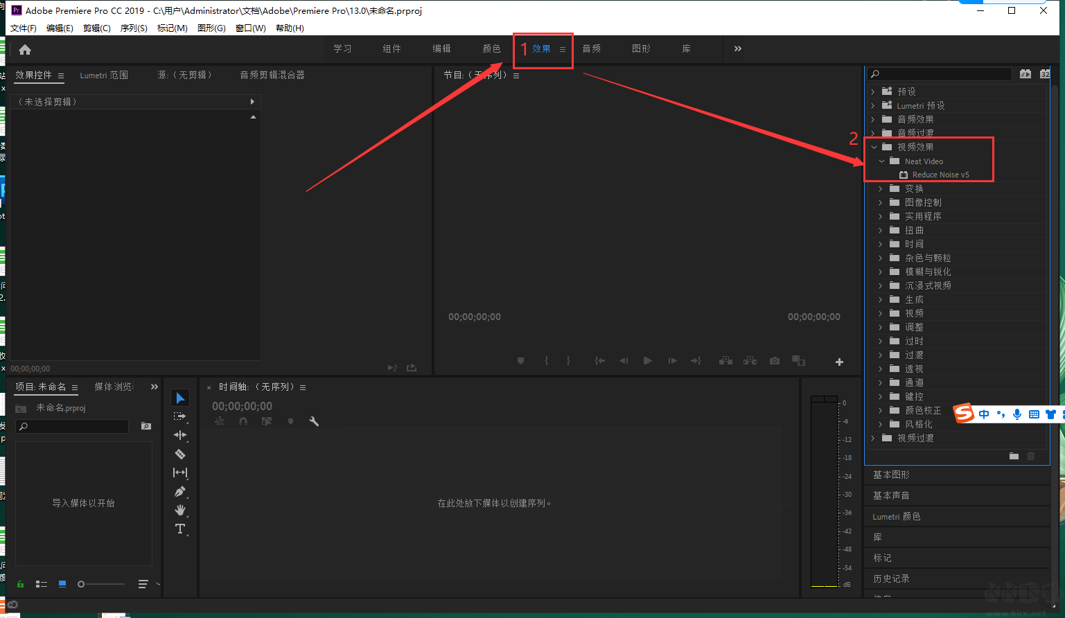 1、在 Premiere 中打開項目,進(jìn)入“效果”面板 → “視頻效果”,即可找到 Neat Video Pro 插件;
