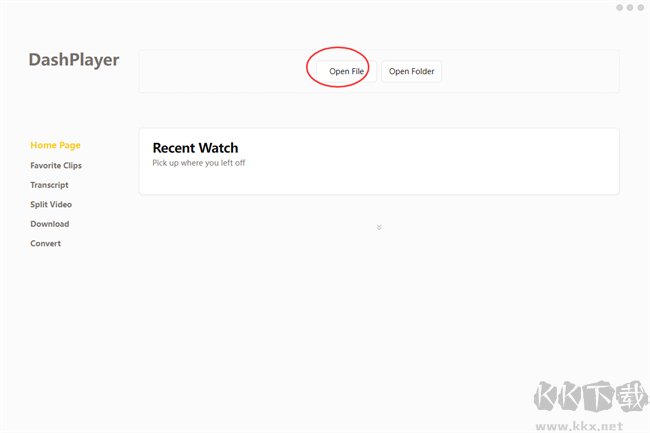 1、點擊首頁 “Open Files” 可打開本地視頻文件
