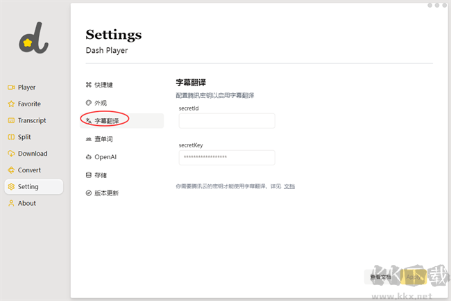 5、使用字幕翻譯需配置騰訊翻譯接口
