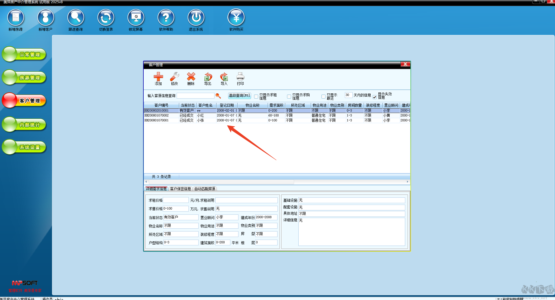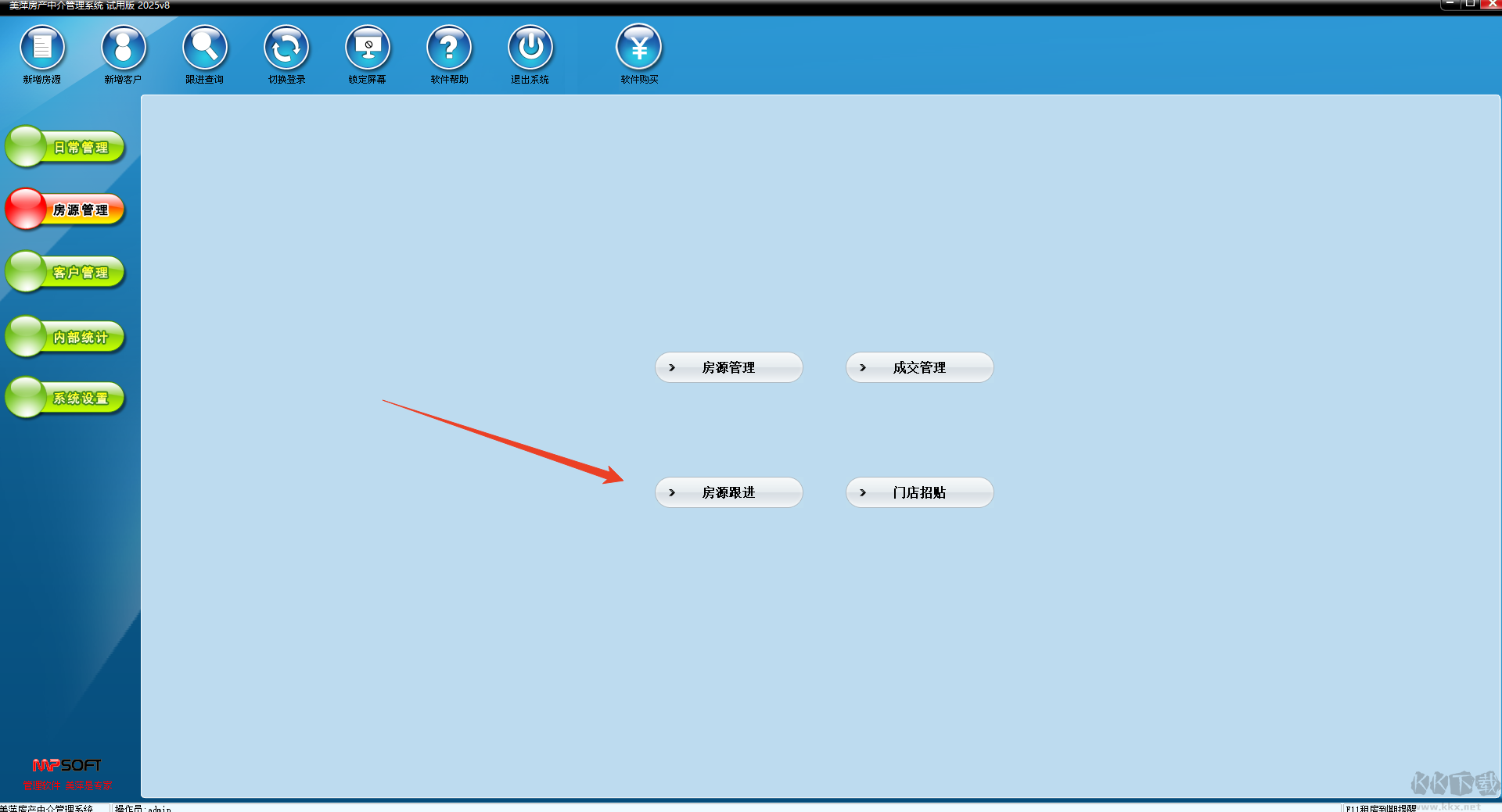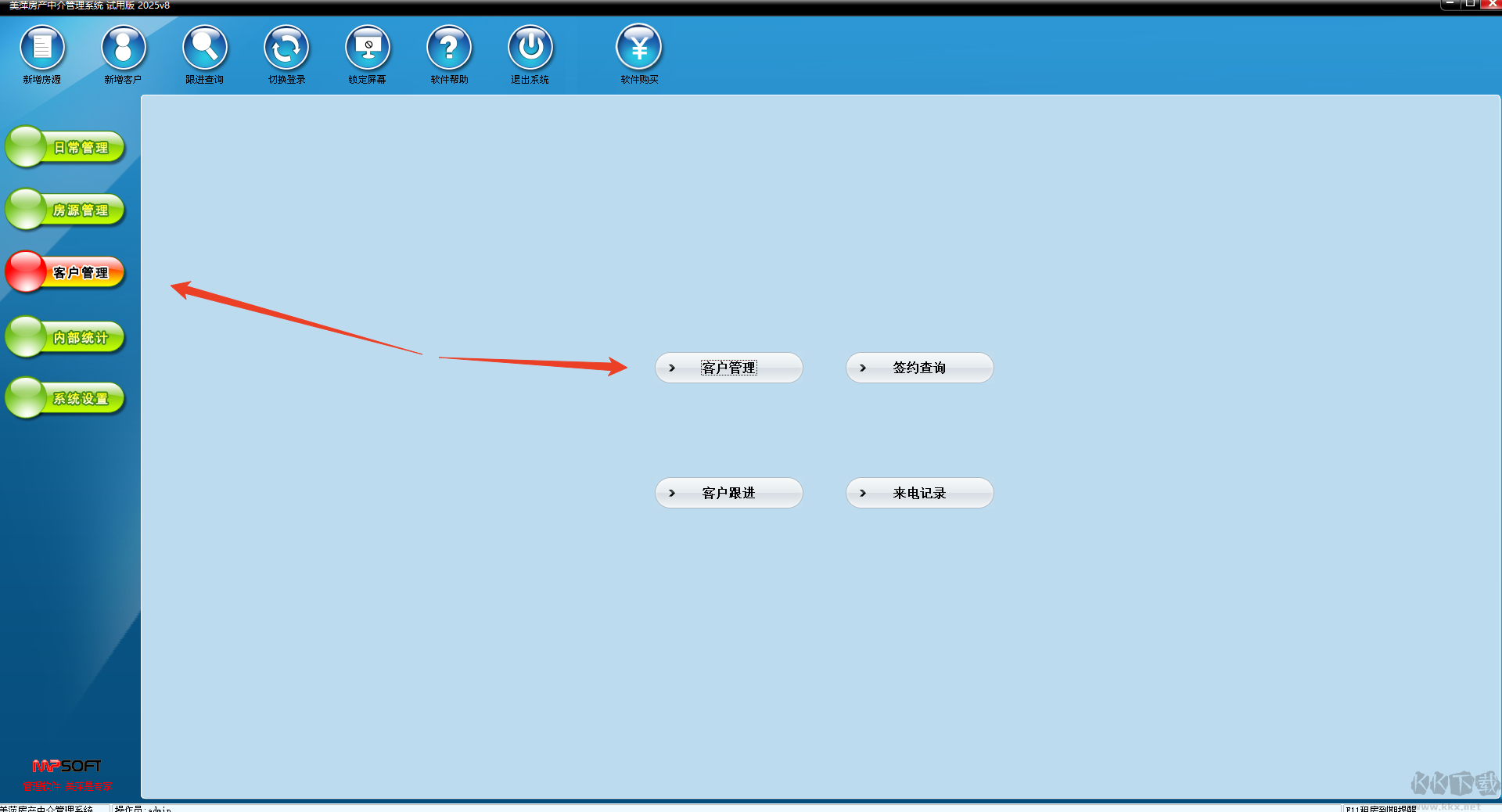 2、主界面為日常管理模塊,可快速查看房源和客戶信息。