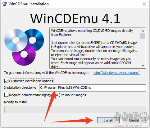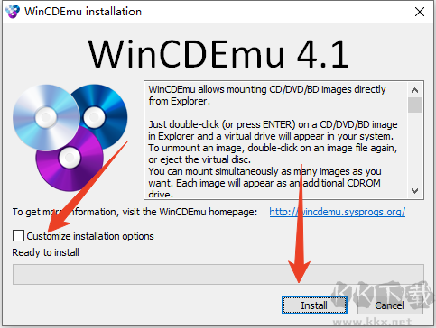 2、也可選擇“Customize”自定義安裝路徑,然后點(diǎn)擊“Install”。
