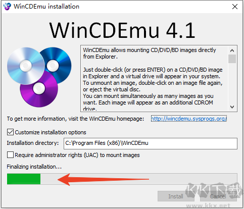 1、解壓安裝包后運(yùn)行exe文件,可直接點(diǎn)擊“Install”進(jìn)行默認(rèn)安裝。