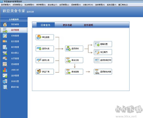 躍臣美食專家連鎖版配備完備、合理的連鎖餐飲行業(yè)的經(jīng)營(yíng)管理模式。適配總部、多連鎖餐廳(直營(yíng)店)、加盟店的集團(tuán)式連鎖經(jīng)營(yíng)模式。