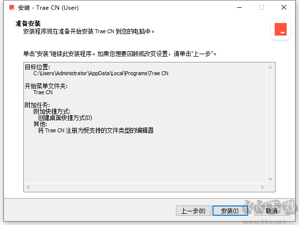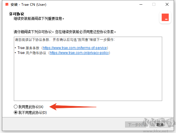 1、下載后運(yùn)行“Trae CN-Setup-x64.exe”,勾選同意協(xié)議后點(diǎn)擊下一步;