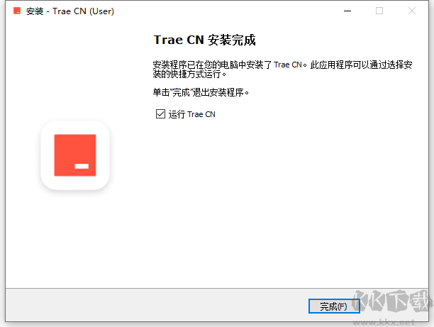 7、勾選“運(yùn)行 Trae”,點(diǎn)擊“完成”退出安裝并啟動(dòng)軟件。