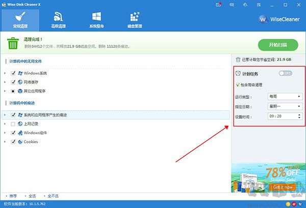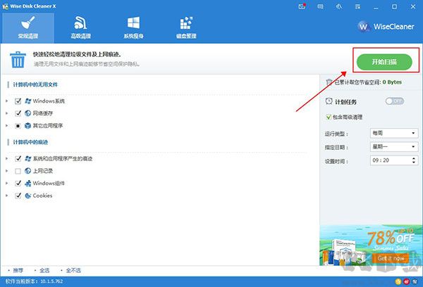Wise Disk Cleaner(磁盤清理器)是一款很實(shí)用的磁盤碎片清理軟件,通過系統(tǒng)瘦身釋放大量系統(tǒng)盤空間,有效清理系統(tǒng)、應(yīng)用程序、瀏覽器的垃圾文件與使用痕跡,還提供磁盤整理工具,可以識別多達(dá)50種垃圾文件,軟件還能刪除臨時文件、日志文件、索引文件、備份文件等大文件來釋放磁盤空間,可以清理壁紙、示例視頻、示例音樂、Windows幫助、Windows補(bǔ)丁備份及安裝文件等不必要的系統(tǒng)內(nèi)容。需要的朋友快來下載試試吧!