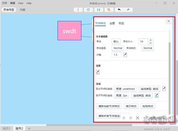 4、與此同時,軟件主界面設(shè)有一個按鈕,點擊該按鈕便能對節(jié)點、主題、標簽等進行相關(guān)設(shè)置。