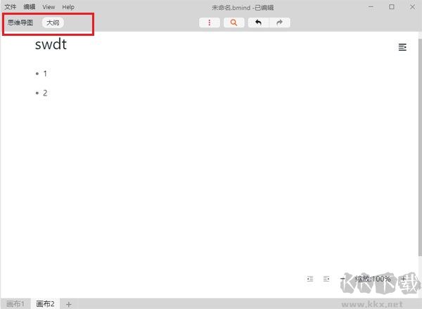 5、界面左上端可自主切換思維導(dǎo)圖與大綱模式。