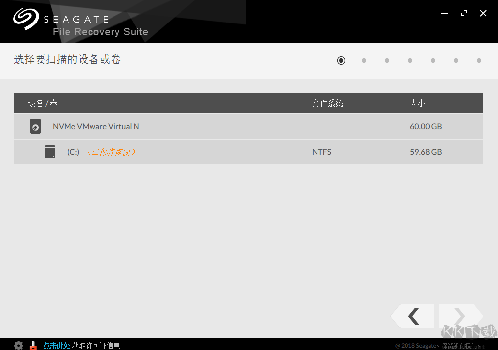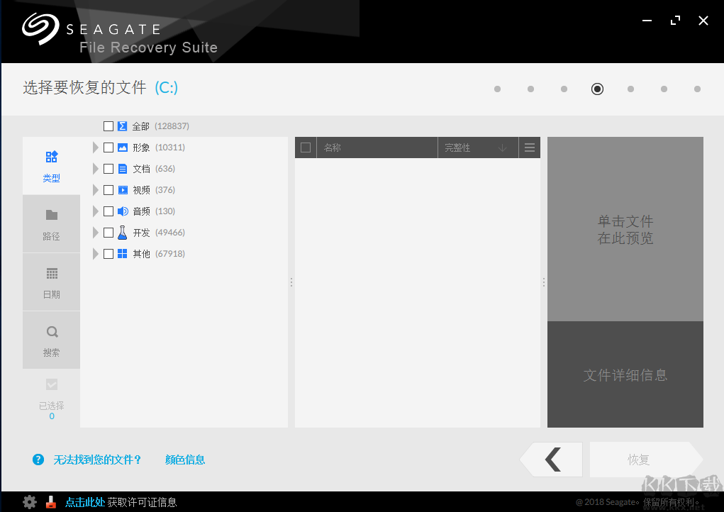1、下載安裝好Seagate Recovery Suite,點擊恢復(fù)文件功能,選擇需要恢復(fù)掃描的設(shè)備;