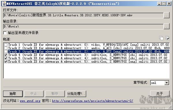2).再用MKVtoolnix(CN)-1.6.4.1提取你想要的文件。