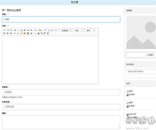 我們點(diǎn)擊一下“內(nèi)容管理”下面的“寫文章”就能進(jìn)入寫文章頁面: