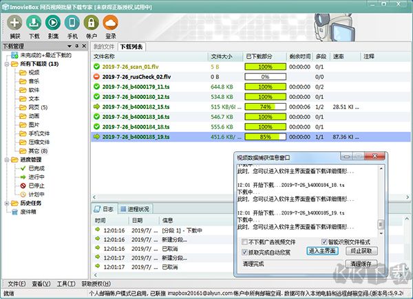ImovieBox(網(wǎng)頁視頻下載器)是一款功能強大而且操作簡便的網(wǎng)頁視頻下載工具,支持MP4、FLV、AVI等格式網(wǎng)頁視頻的批量抓取與下載。軟件還支持邊看邊下模式,給用戶帶來優(yōu)質(zhì)的網(wǎng)頁視頻下載與觀看體驗。具備自動存儲到郵箱的功能,登錄后可以添加任意數(shù)量的其他郵箱賬號,這些賬號對應(yīng)的空間將作為擴展空間,會自動將多個賬號的空間合并為一個大容量存儲空間,用于永久保存數(shù)據(jù),使用十分便捷。需要的朋友快來下載試試吧!