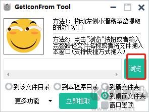 [-到本程序目錄 -> 提取的圖標(biāo)統(tǒng)一存放于當(dāng)前工具運(yùn)行的程序目錄中,不創(chuàng)建新文件夾。