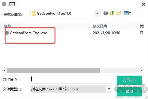 1、下載軟件壓縮包文件解壓,雙擊打開“GetIconFrom Tool.exe”軟件