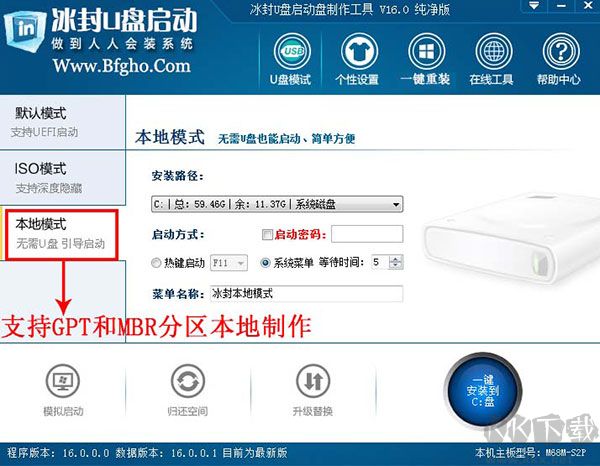 2、本地模式支持GPT和MBR分區(qū)本地制作
