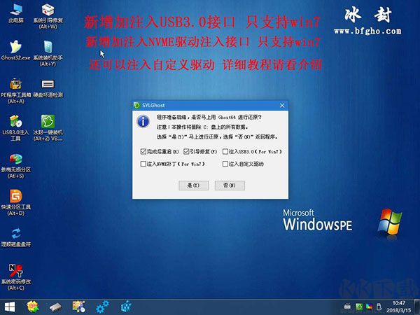 6、PE系統(tǒng)內(nèi)置ghost32一鍵還原工具,實(shí)現(xiàn)快速系統(tǒng)恢復(fù),支持一鍵將系統(tǒng)安裝至本地硬盤。