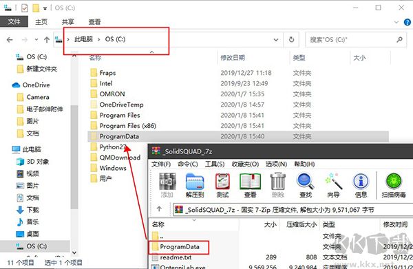 3、軟件安裝完成后,將_SolidSQUAD_文件解壓出來(lái),復(fù)制ProgramData到C盤(pán)根目錄下;
