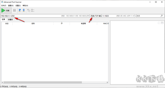 1、在軟件界面輸入掃描的地址,如果知道端口就可以輸入