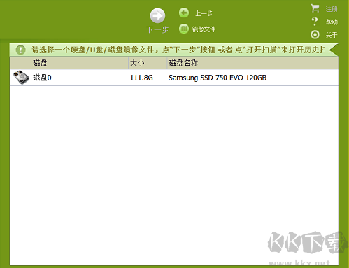 2、選擇一個需要恢復的硬盤、U盤、磁盤鏡像文件,點擊下一步