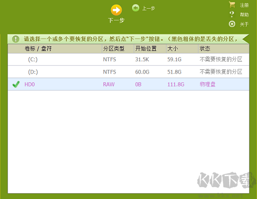 4、系統(tǒng)會自動判斷出需要恢復的盤符空間,點擊相應的盤符即可