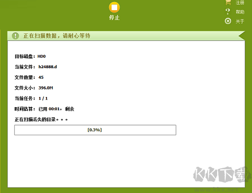 5、正在掃描丟失的目錄,請慢慢的等待吧
