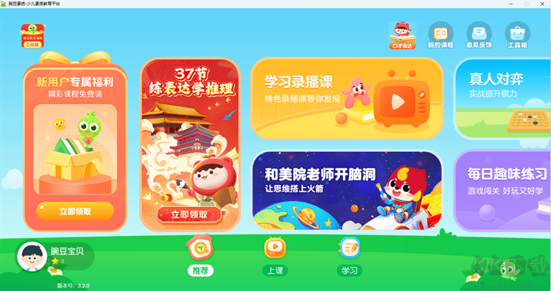 豌豆素質(zhì)是一款3-12歲兒童的素質(zhì)教育應(yīng)用,課程覆蓋益智探索、口才表達(dá)、編程、美術(shù)等多樣領(lǐng)域,按年齡設(shè)置階梯體系,學(xué)齡前筑牢基礎(chǔ),小學(xué)階段銜接校內(nèi)重難點(diǎn)和拓展思維,采用國(guó)際認(rèn)可的6E學(xué)習(xí)法,以游戲化情景激發(fā)興趣,引導(dǎo)探索理解、表達(dá)觀點(diǎn),延伸知識(shí)應(yīng)用場(chǎng)景,課后生成學(xué)習(xí)報(bào)告,提供課堂回顧,搭配家長(zhǎng)輔導(dǎo)內(nèi)容與監(jiān)課功能,形成完整學(xué)習(xí)閉環(huán),讓孩子在趣味中提升思維與表達(dá)能力。