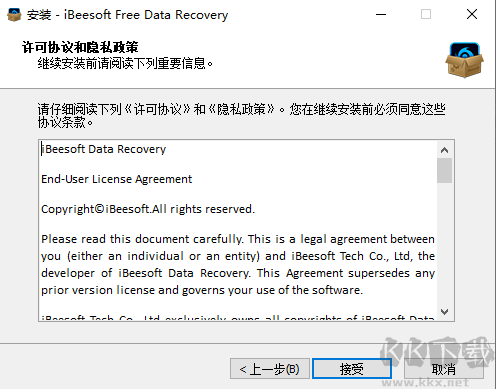 1、下載iBeesoft Data Recovery壓縮包文件解壓,雙擊“iBeesoft-Data-Recovery.exe”文件進(jìn)入安裝程序,默認(rèn)為簡體中文