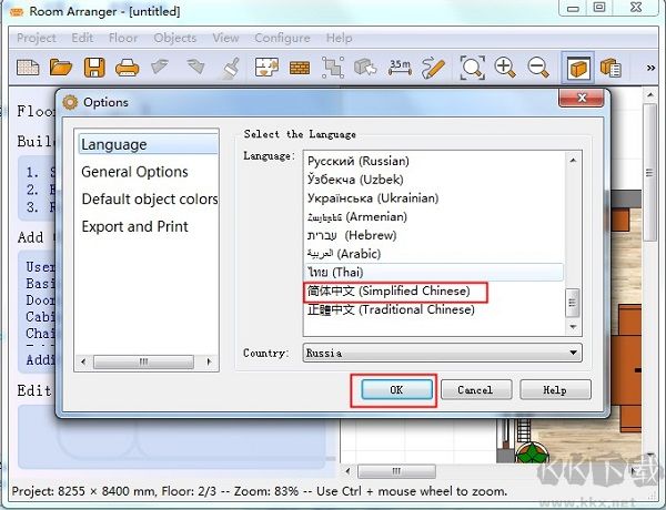 2、選擇language里面的簡(jiǎn)體中文,Country選china即可完成漢化