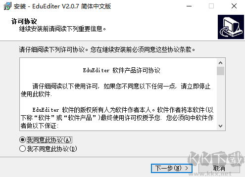 1、獲取安裝文件并完成解壓,隨后啟動(dòng)安裝程序,勾選接受許可協(xié)議選項(xiàng),進(jìn)入下一步驟。